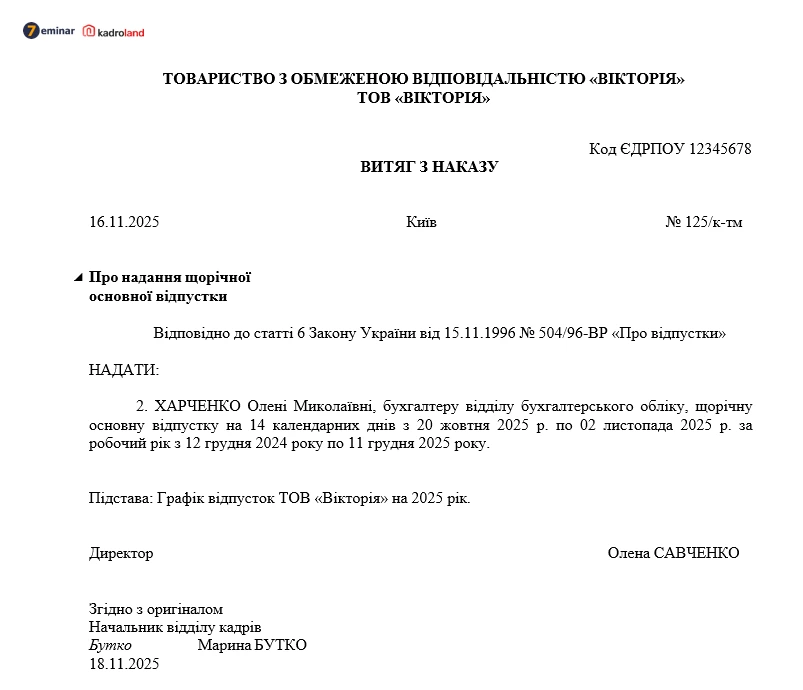Витяг з наказу: оформлюємо правильно + зразок