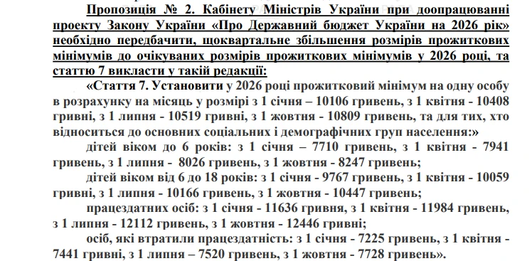 - збільшення прожиткового мінімуму на одну особу в розрахунку на місяць.