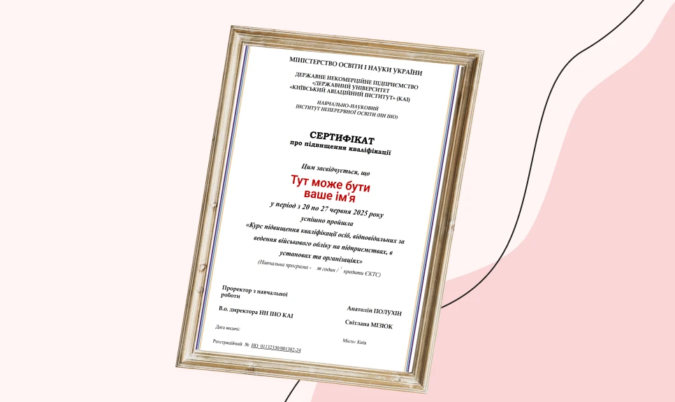 Багато хто бачив лист Міноборони від 07.06.2023 р за номером 383 /вих. ЗВГ/6 з переліком закладів освіти, що мають право проводити підвищення кваліфікації осіб, відповідальних за ведення військового обліку. Станом на сьогодні таких закладів значно більше, серед них і Держаний університет «Київський авіаційний інститут».