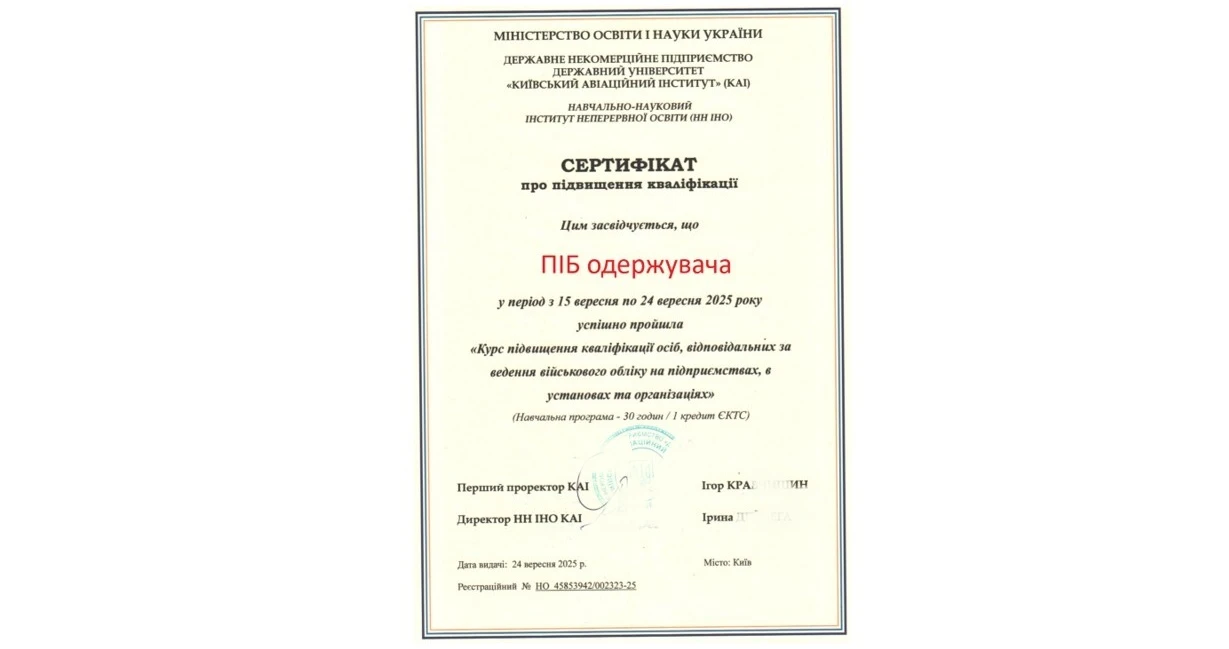 Підвищення кваліфікації з військового обліку: сертифікат і штрафи за відсутність
