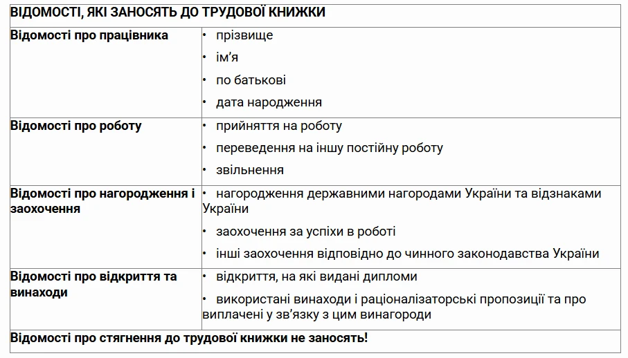 Усі записи в трудовій книжці про прийняття на роботу, переведення на іншу постійну роботу або звільнення, а також про нагороди та заохочення вносяться роботодавцем після видання наказу (розпорядження), але не пізніше тижневого строку.