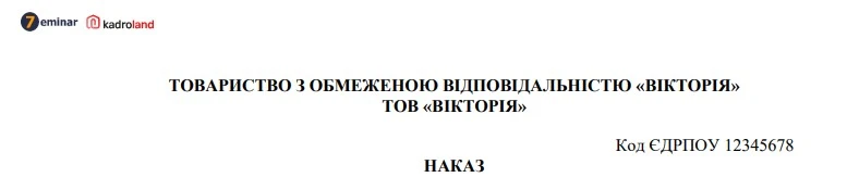 Далі йде код ЄДРПОУ. Його розташовують під назвою.