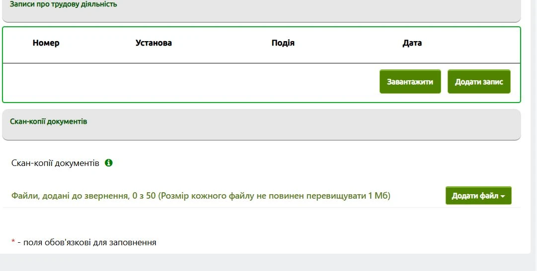 Якщо оцифровуємо записи, то натискаємо кнопку «Додати запис». Нагадуємо, що сканкопії трудової книжки все одно слід долучити:
