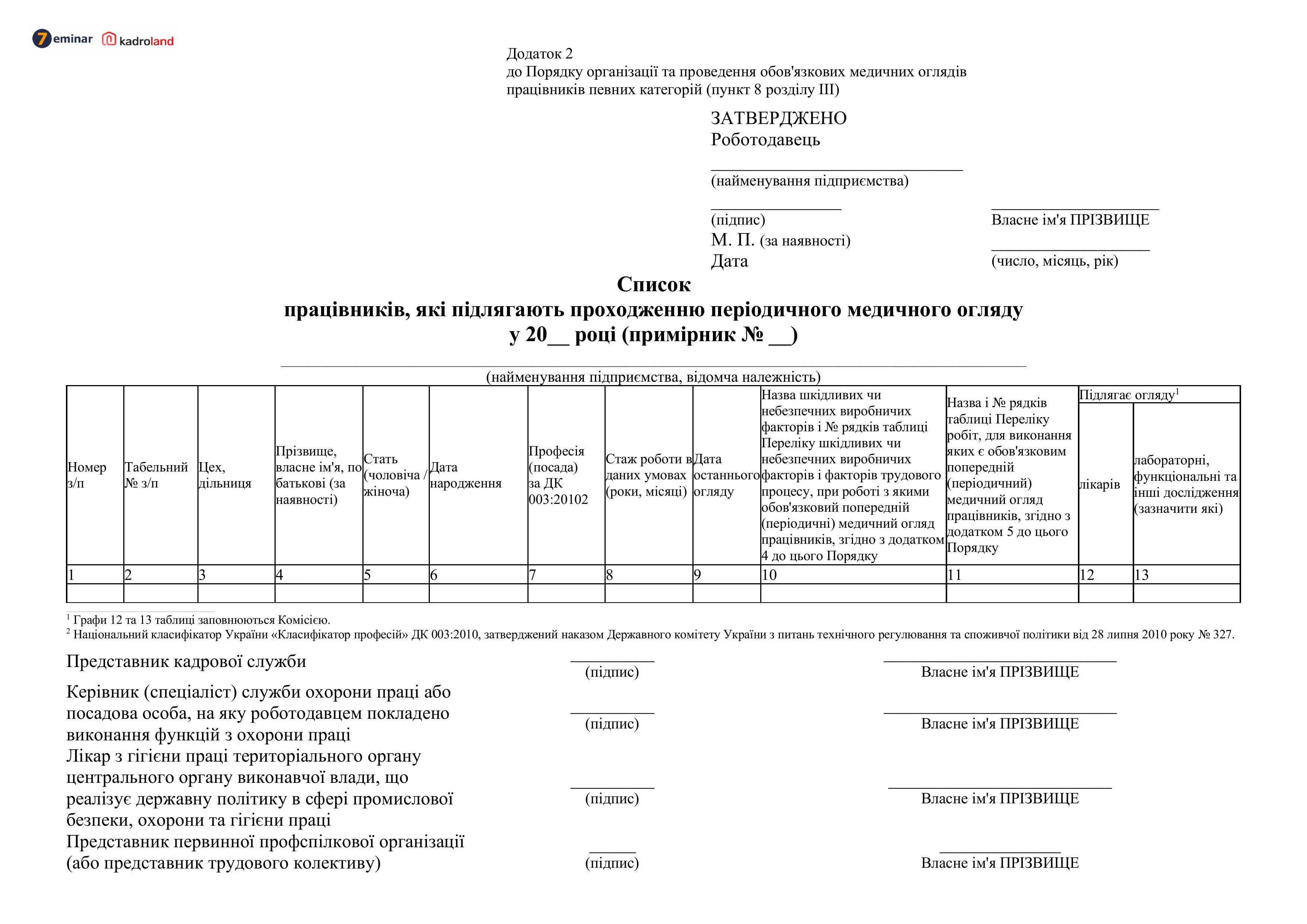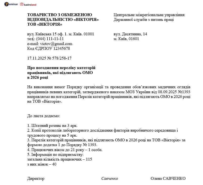 - Погоджений Перелік стає підставою для інформування працівників і формування поіменних списків для медогляду.