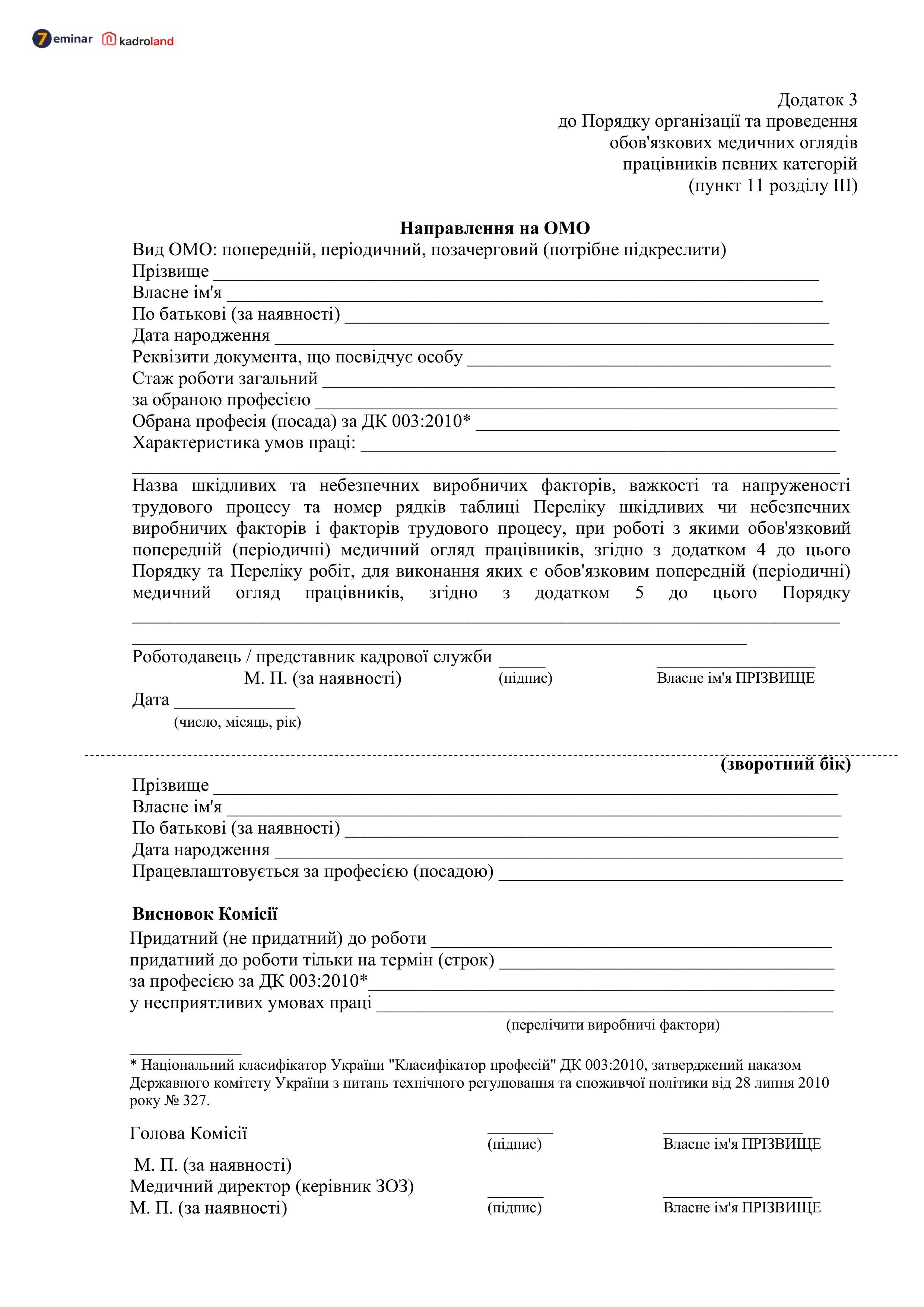 Направлення на обов'язковий медичний огляд (наказ МОЗ №1393)