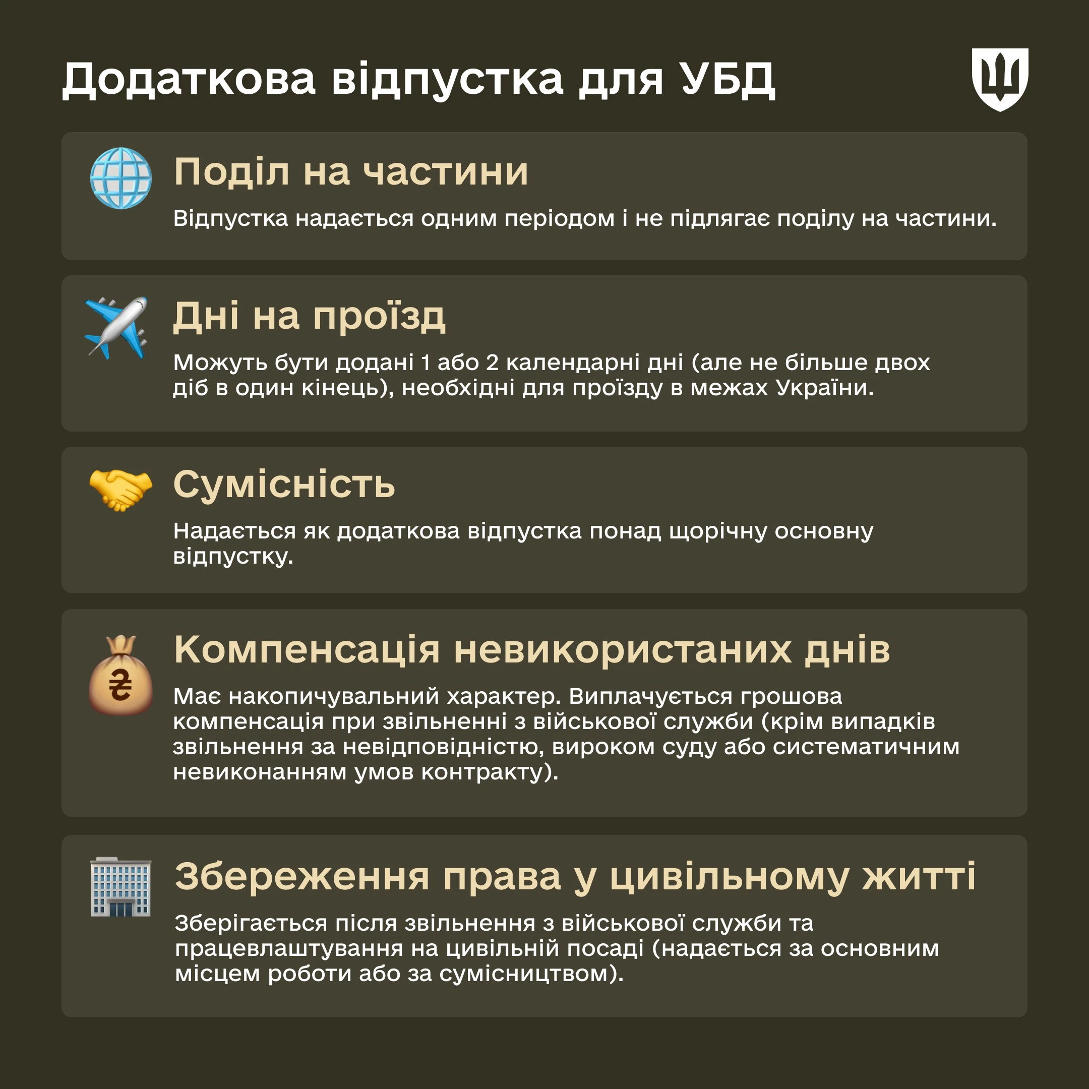 Ця відпустка надається протягом календарного року з моменту набуття військовослужбовцем на неї права, незалежно від тривалості фактично відслуженого часу в поточному році. Вона є додатковою відпусткою і надається понад щорічну основну відпустку.