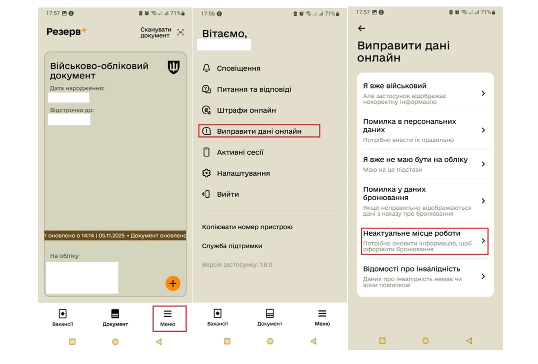 У такому випадку працівнику потрібно самому оновити свої дані у застосунку «Резерв+».