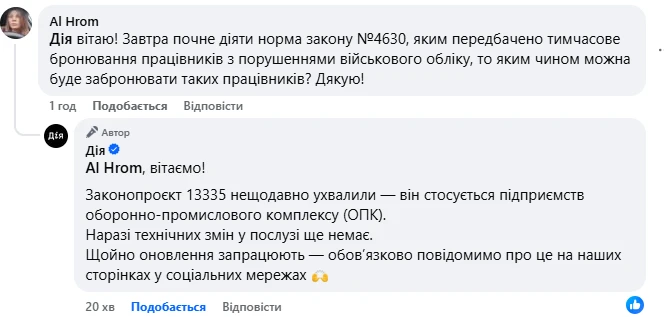 Утім станом на зараз відповідні зміни не внесені. Відповідно й технічної можливості забронювати таких працівників через «Дію» немає.