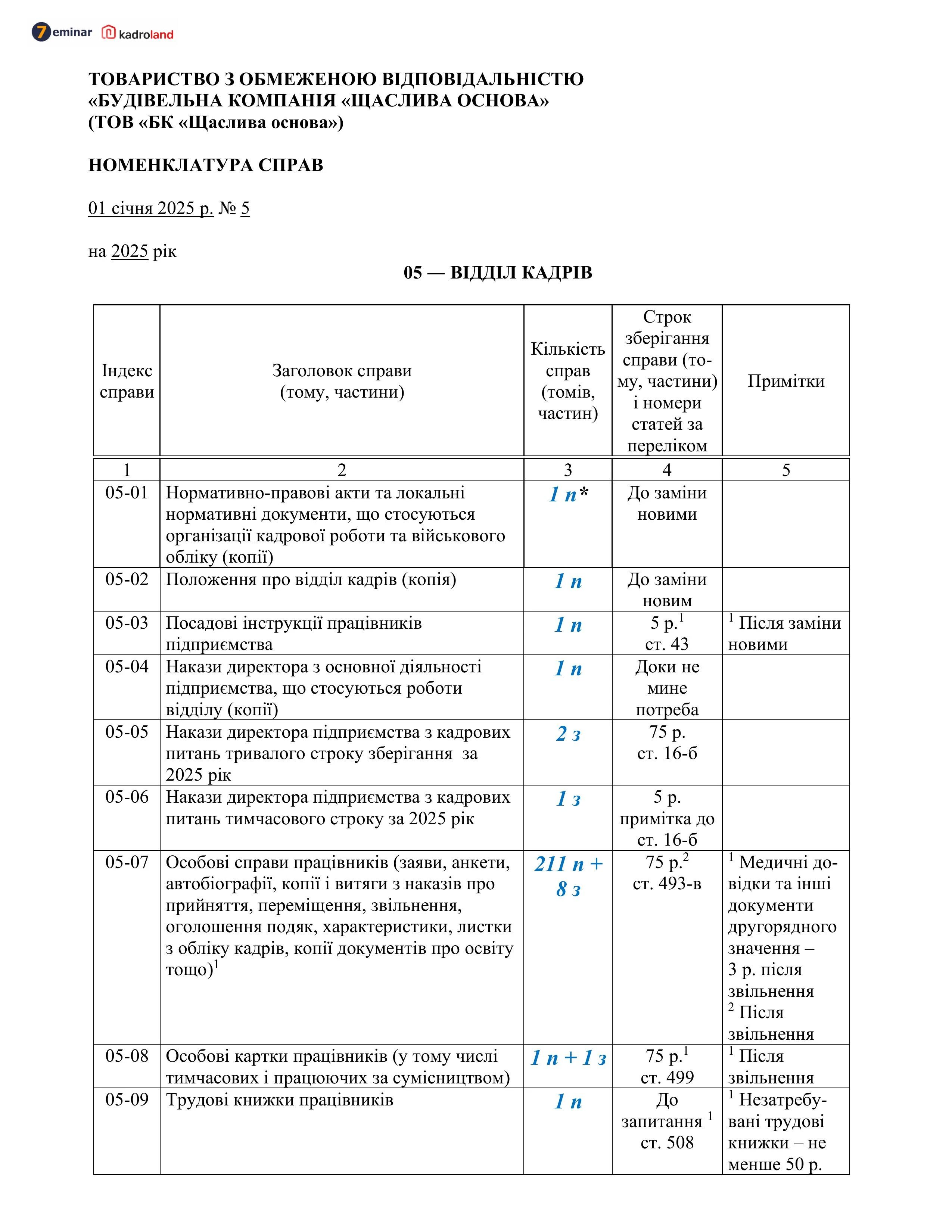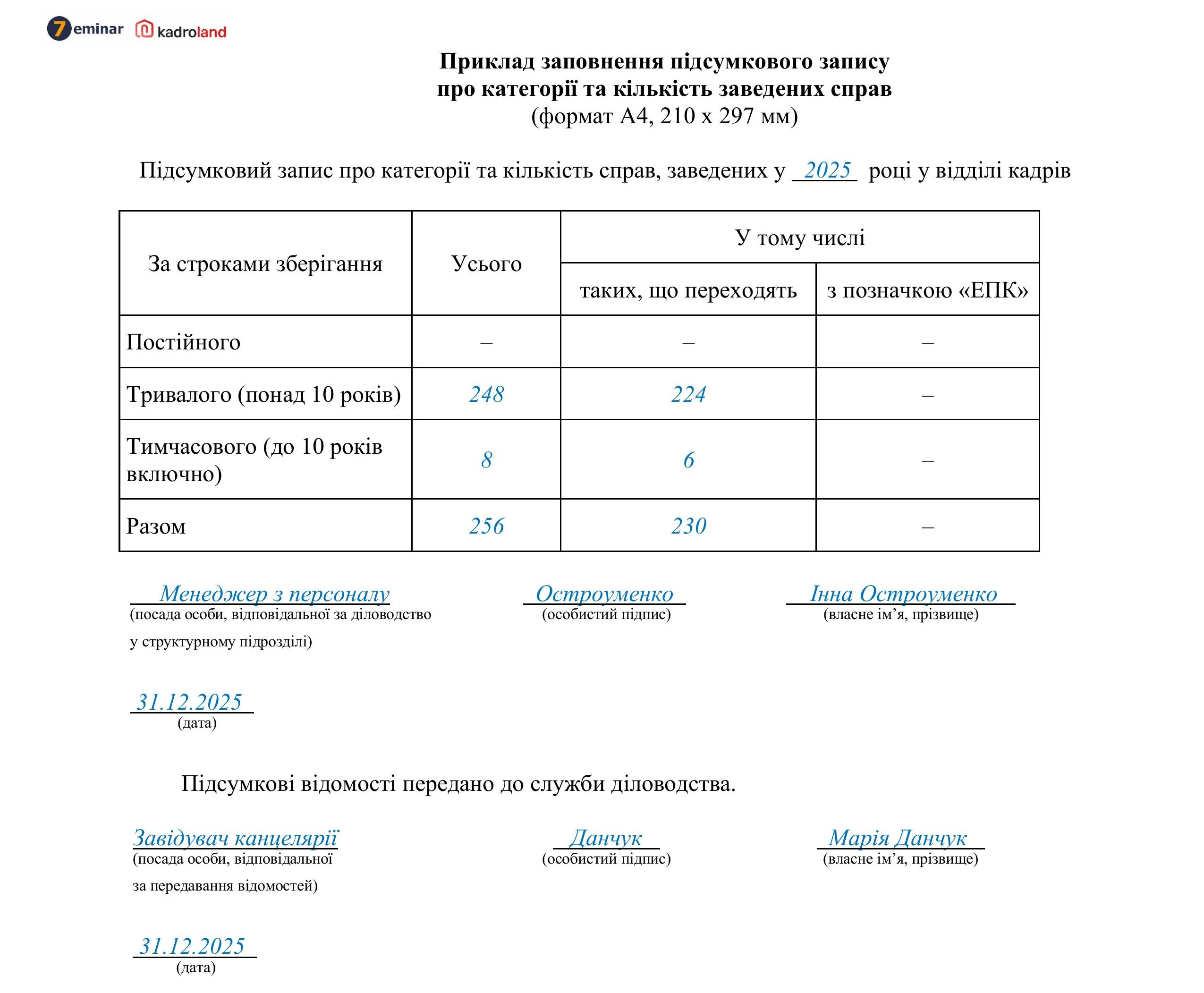 - Відомості про кількість заведених у 2025 році справ на підприємстві необхідні для своєчасного та якісного формування архіву.