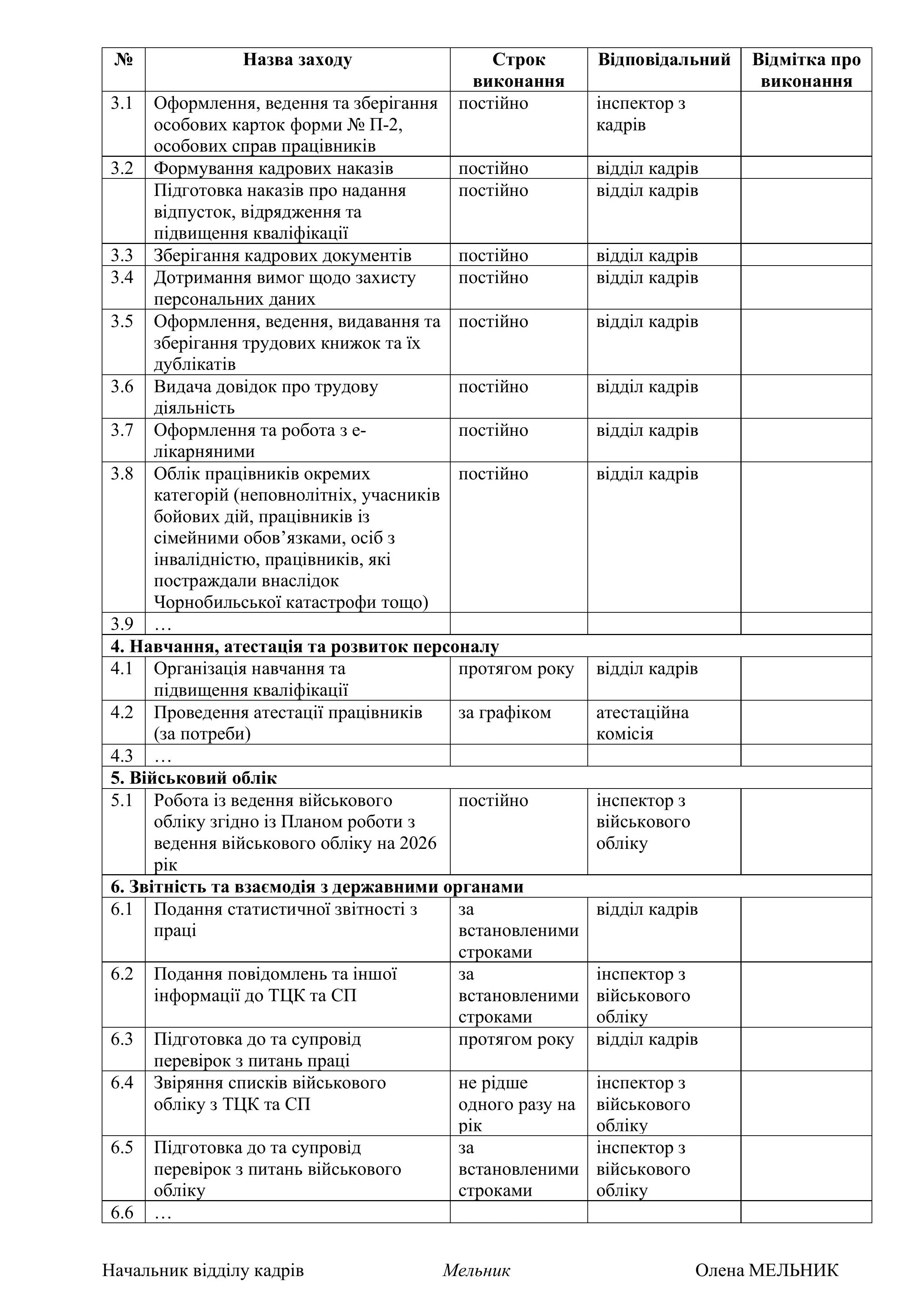 На 2026 рік у плані роботи слід передбачити системну роботу з кадровими документами:
