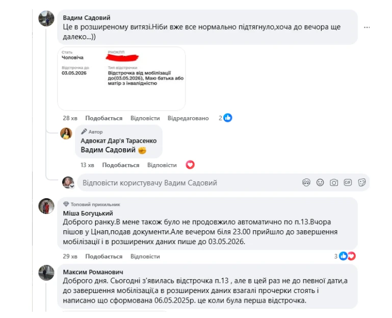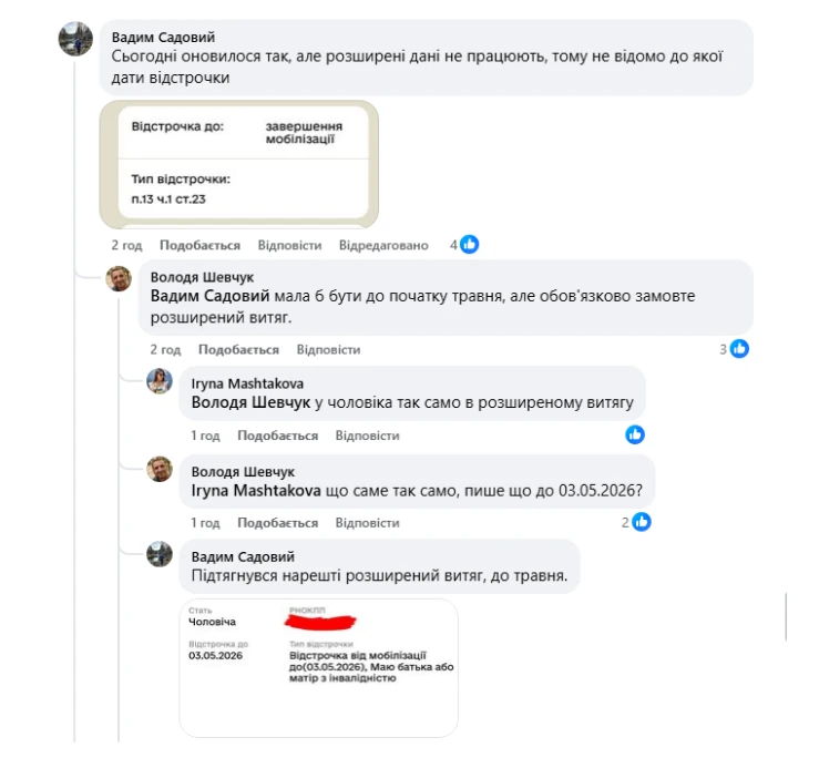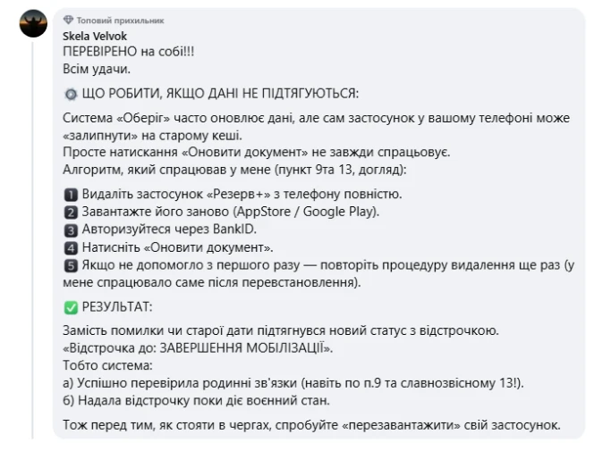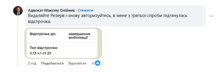 Користувачі «Резерв+» пишуть, що після таких маніпуляцій у багатьох таки підтягнулась інформація про відстрочку, але не у всіх.