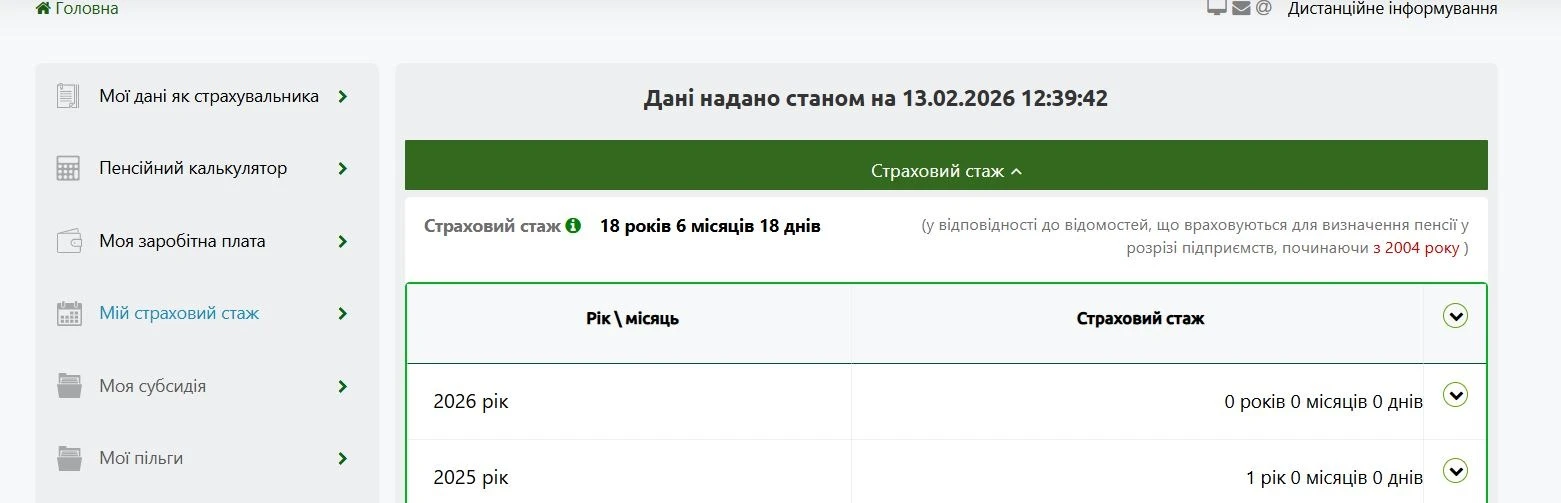 Подивитися стаж онлайн можна у вкладці «Мій страховий стаж».