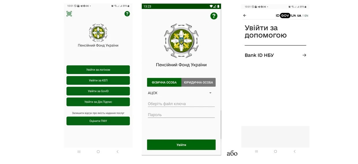 Заходимо на вебпортал ПФУ й обираємо спосіб авторизації.