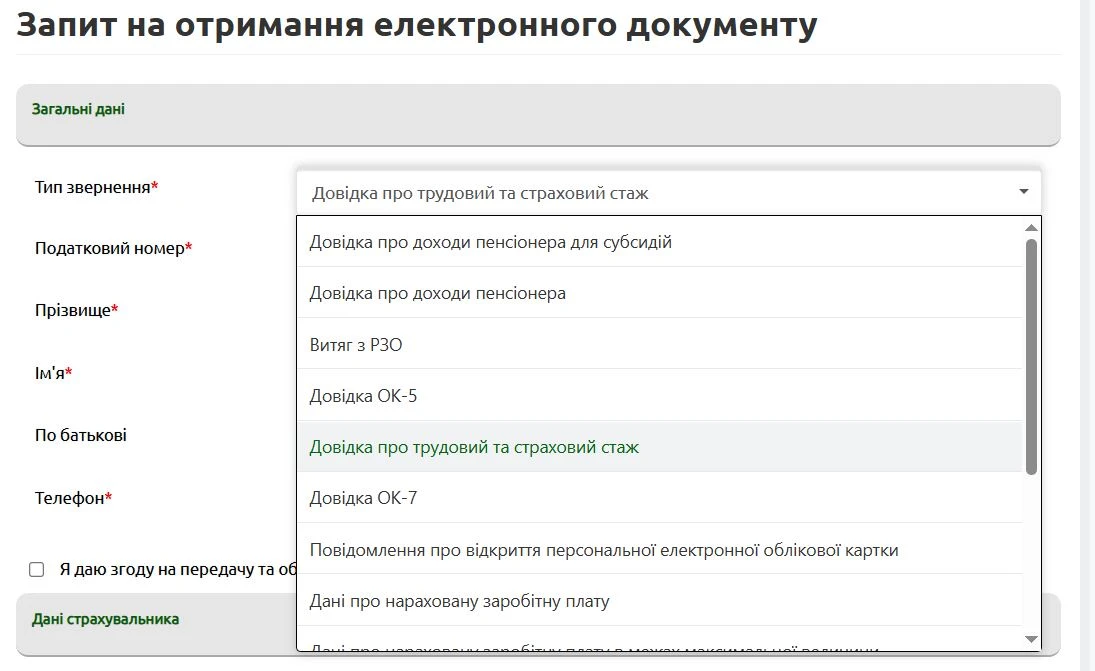 Увага! «Дані про трудовий та страховий стаж» в застосунку «Дія» не формуються. ЇХ можна замовити через вебпортал або оффлайн