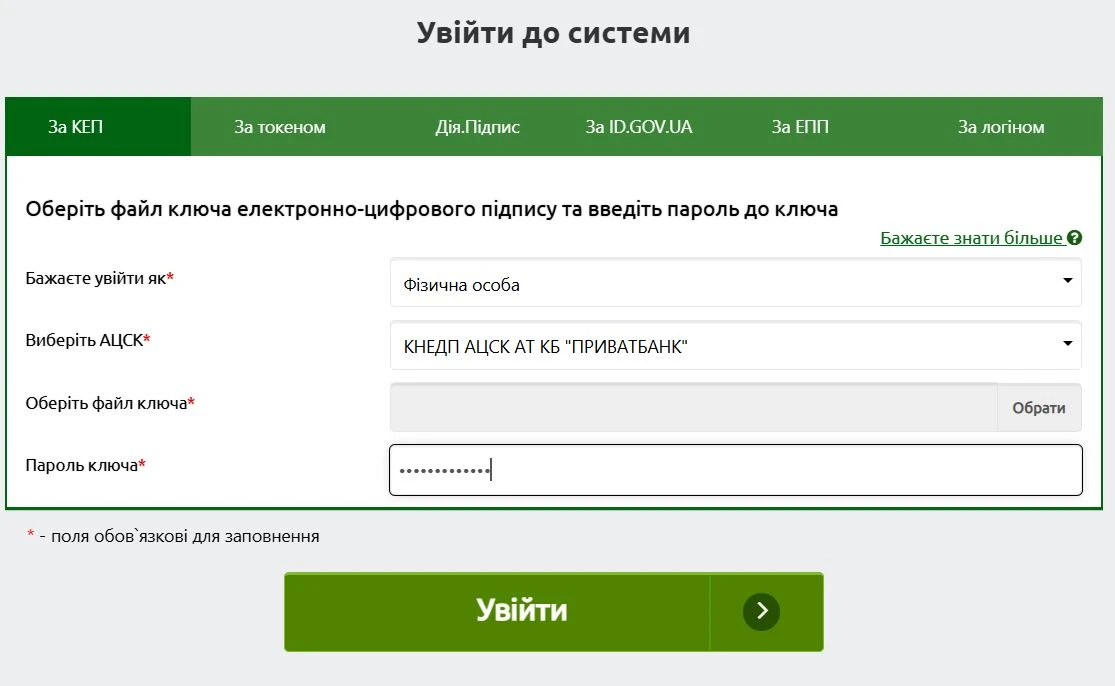 - кваліфікованого електронного підпису (КЕП);