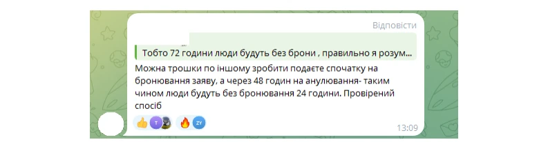 При цьому строк опрацювання заяви на бронювання становить 72 години.