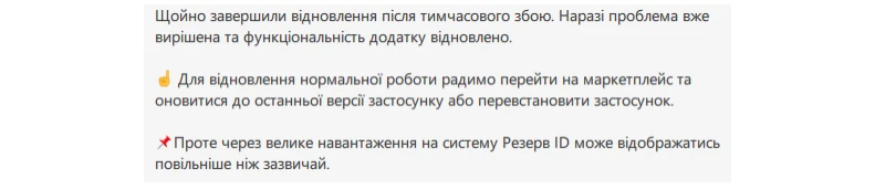Проте через велике навантаження на систему Резерв ID може відображатись повільніше ніж зазвичай.