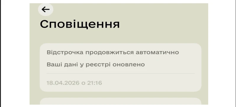А дехто отримує сповіщення про те, що відстрочку буде продовжено.