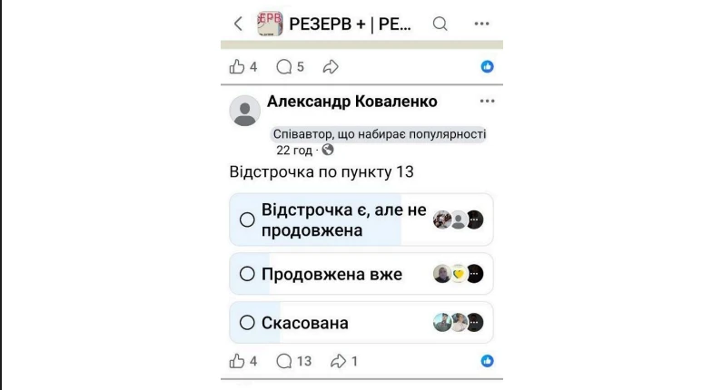Навіть в одній з груп у facebook зробили опитування щодо продовження відстрочки: